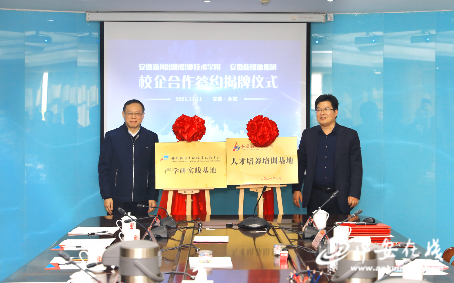 中安在線、中安新聞客戶端訊 11月11日上午,安徽新媒體集團與安徽新聞出版職業技術學院簽署校企合作框架協議,并為“人才培養培訓基地”和“產學研實踐基地” 揭牌。雙方將圍繞人才培養、項目研發、科研成果轉化等方面開展深度校企合作,探索新媒體環境下“媒體+高校”攜手發展的新模式。